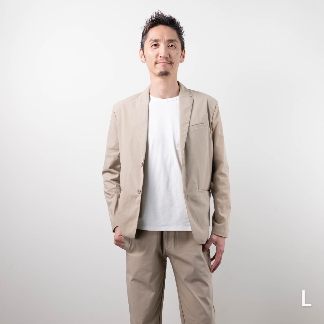ビジネスシーンでも使えるシャープさと、カジュアルダウンしても着れるシンプルさを兼ね備えた、アンコンジャケット。適度な厚みとマット感で高級感がある一方、伸縮する生地で着心地良く快適に。